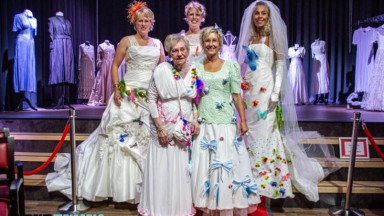 Ongenode Gast aanwezig bij expositie bijzondere trouwjurken